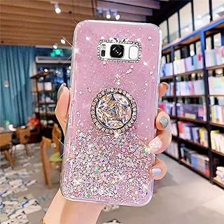 Uposao Kompatibel mit Samsung Galaxy S8 Hülle Glitzer Silikon Handyhülle mit Ring Halter Ständer Schutzhülle für Mädchen Glänzend Bling Strass Diamant Transparent TPU Handyhülle,Rosa