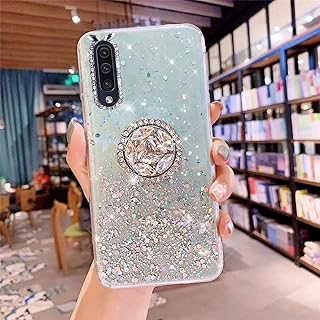 Uposao Kompatibel mit Samsung Galaxy A70 Hülle Glitzer Silikon Handyhülle mit Ring Halter Ständer Schutzhülle für Mädchen Glänzend Bling Strass Diamant Transparent TPU Handyhülle,Grün