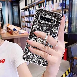 Uposao Kompatibel mit Samsung Galaxy S10 Plus Hülle Glitzer Silikon Handyhülle mit Ring Halter Ständer Schutzhülle für Mädchen Glänzend Bling Strass Diamant Transparent TPU Handyhülle,Schwarz