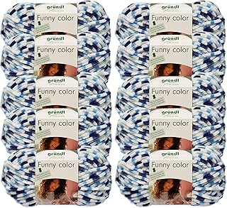 Gründl Wolle/HdK-Versand 10x100 Gramm Funny Color Wollpaket Softgarn SB Pack Babygarn inkl. Anleitung für EIN Funny Bunny (03 Weiss Blau)