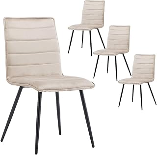 Duhome 4er Set Esszimmerstuhl aus Stoff Samt Stuhl Retro Design Polsterstuhl mit Rückenlehne Metallbeine Farbauswahl 8045A, Farbe:Cappuccino, Material:Samt