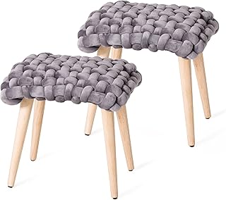 Grau Strick Samt Hocker Polsterhocker Strickhocker Pouf Schminkhocker Samt Schwammgefüllter mit 4 Holzhocker Beine Sitzhocker 45 cm Hoch Samt Hocker für Schminktisch Schlafzimmer Wohnzimmer