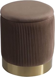 HOMOPIV Hocker mit Stauraum, Zylindrischer Samthocker, Sitzhocker mit Aufbewahrungsbox, Pouf aus Samt und Golde Metallbasis, Polsterhocker rund, Schminktisch Hocker braun