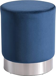 HOMOPIV Hocker, Zylindrischer Samthocker, Sitzhocker mit Metallbasis, Pouf Samt, Polsterhocker rund, Fußbank modern, Schminktisch Hocker blau